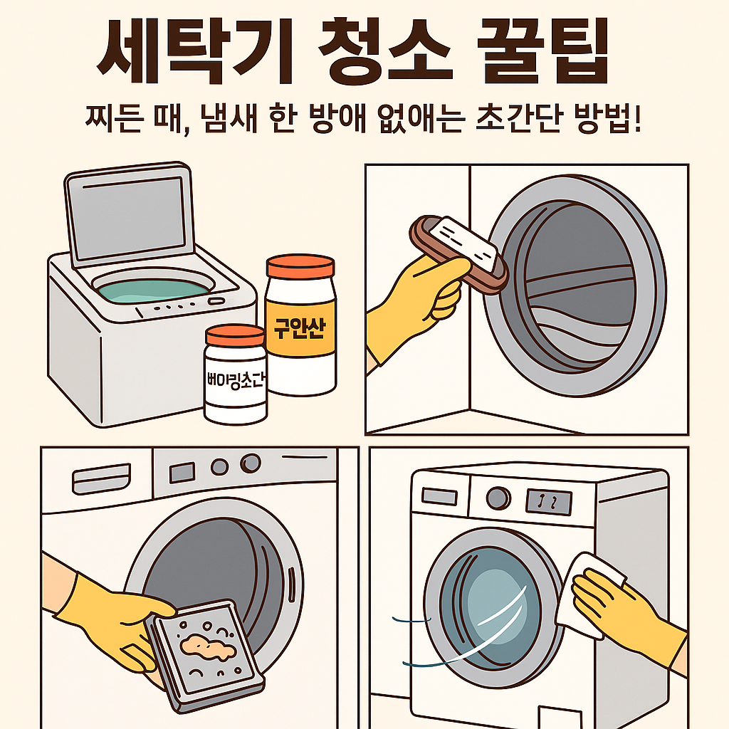 세탁기 청소 꿀팁 !! 찌든 때, 냄새 한 방에 없애는 초간단 방법!매일 깨끗한옷을 만들어주는 세탁기과연세탁기는 깨끗할까요? 얼마 전부터 빨래에서‘쾌쾌한 냄새’가 나길래,세탁기 속을 들여다 봤더니…세탁기 안이온통 곰팡이 천국이었어요! ㅠ 그래서오늘 제가 직접 해보고효과 본 세탁기 청소 꿀팁 5가지를공유해볼게요. 1. 청소 전 준비물 체크리스트* 베이킹소다 1컵* 구연산 or 식초 1컵* 뜨거운 물* 칫솔 or 작은 솔* 면장갑 or 헌 수건→ 모두 집에 있는 재료로 OK! 2. 세탁조 청소 – 눈에 안 보이지만 핵심![통돌이/드럼 공통]베이킹소다 + 구연산을 세탁조에 넣고뜨거운 물을 가장 높은 수위로 채워요표준 세탁 코스로 한 번 돌리기 (헹굼 O, 탈수 X)→ 이 과정만으로도 물때, ..